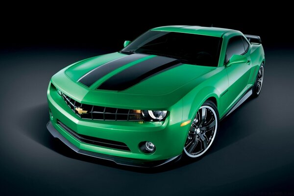 Green car on black background