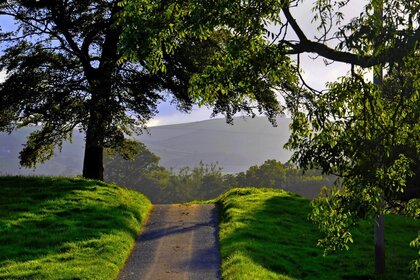 The road among the green forest