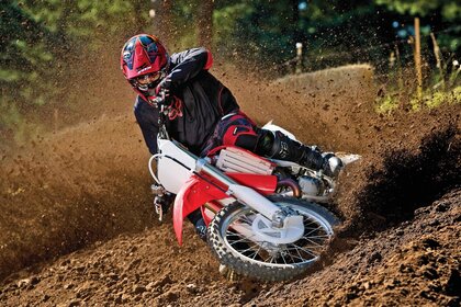 The red motorcycle strives for victory