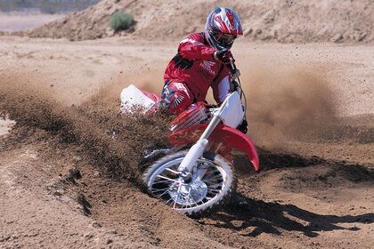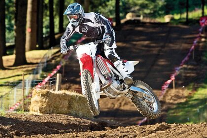 Moto racer in flight over the ground