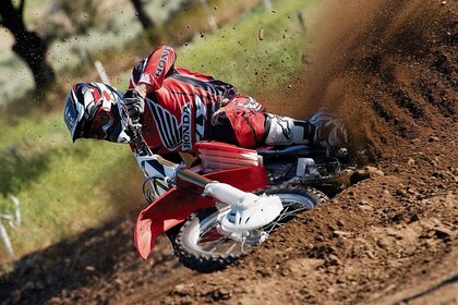 Motorcycle in a turn a lot of land