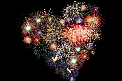 Festive fireworks in the shape of a heart