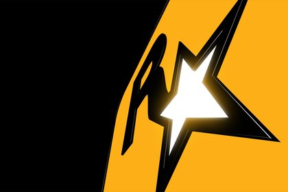 The letter R and a star on a yellow background