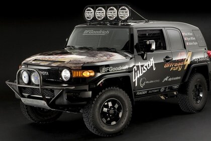 Powerful black toyota on a black background