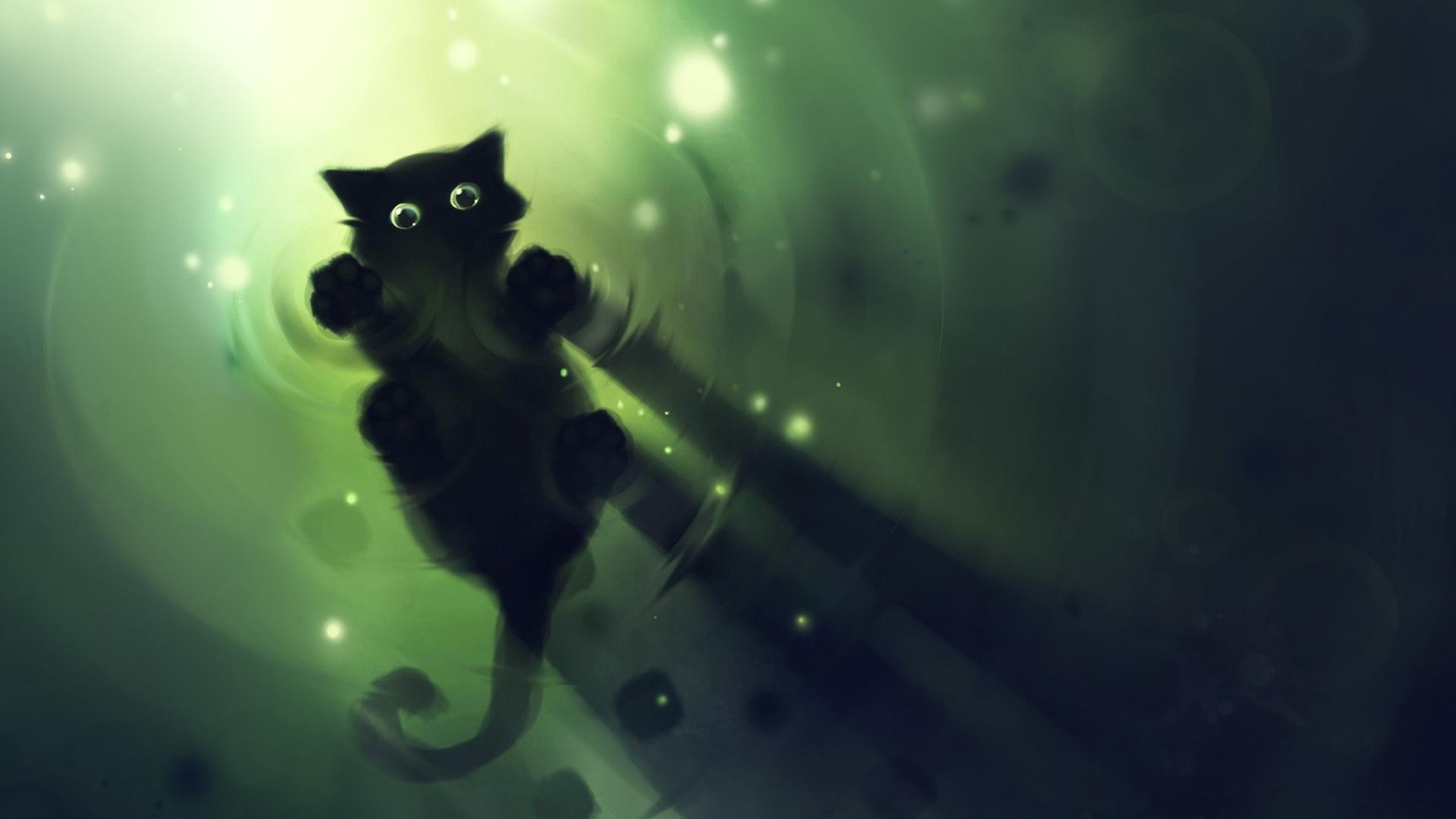 Silhouette of a black kitten from under the water - wallpapers for your phone