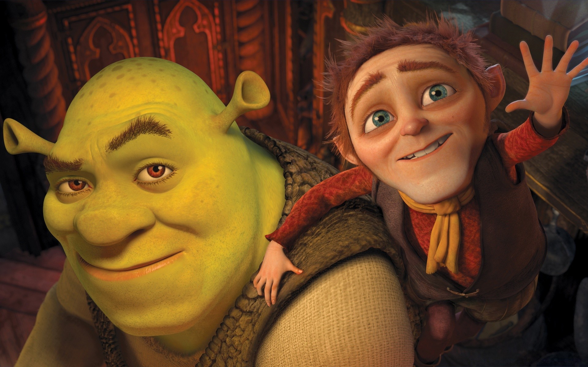The cartoon character Shrek. Fiona stands with a gun in her hands