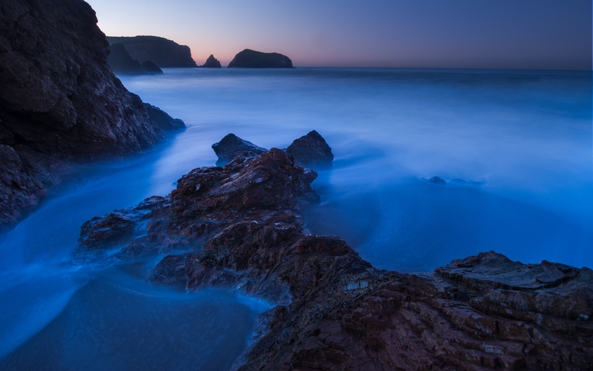 The branches of a palm tree open the view of the oceanThe branches of a palm tree open the view of the ocean