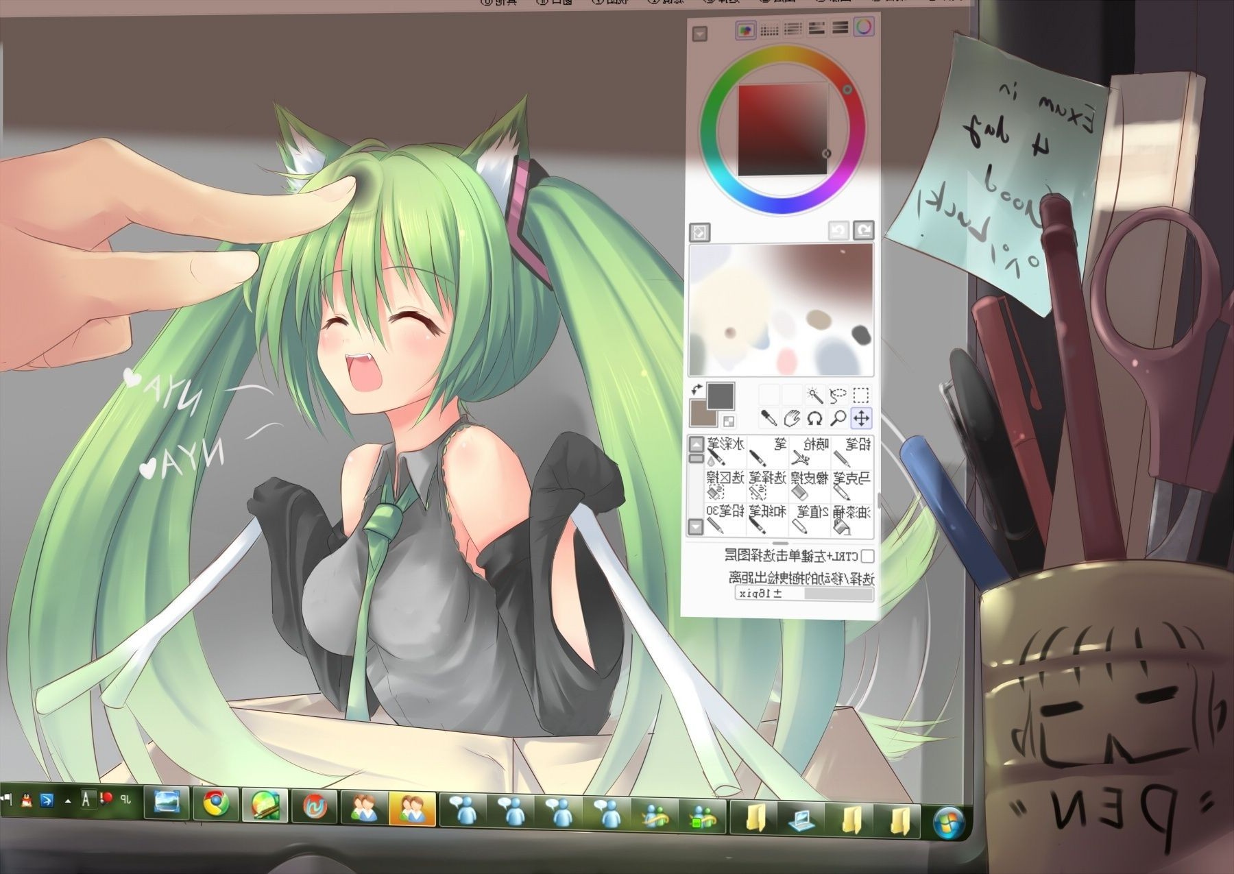 Illustration on computer anime girls