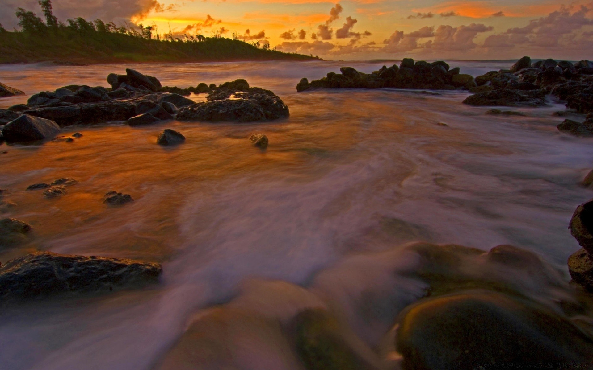Sunset and sunrise on the beach of the sea and ocean in the water