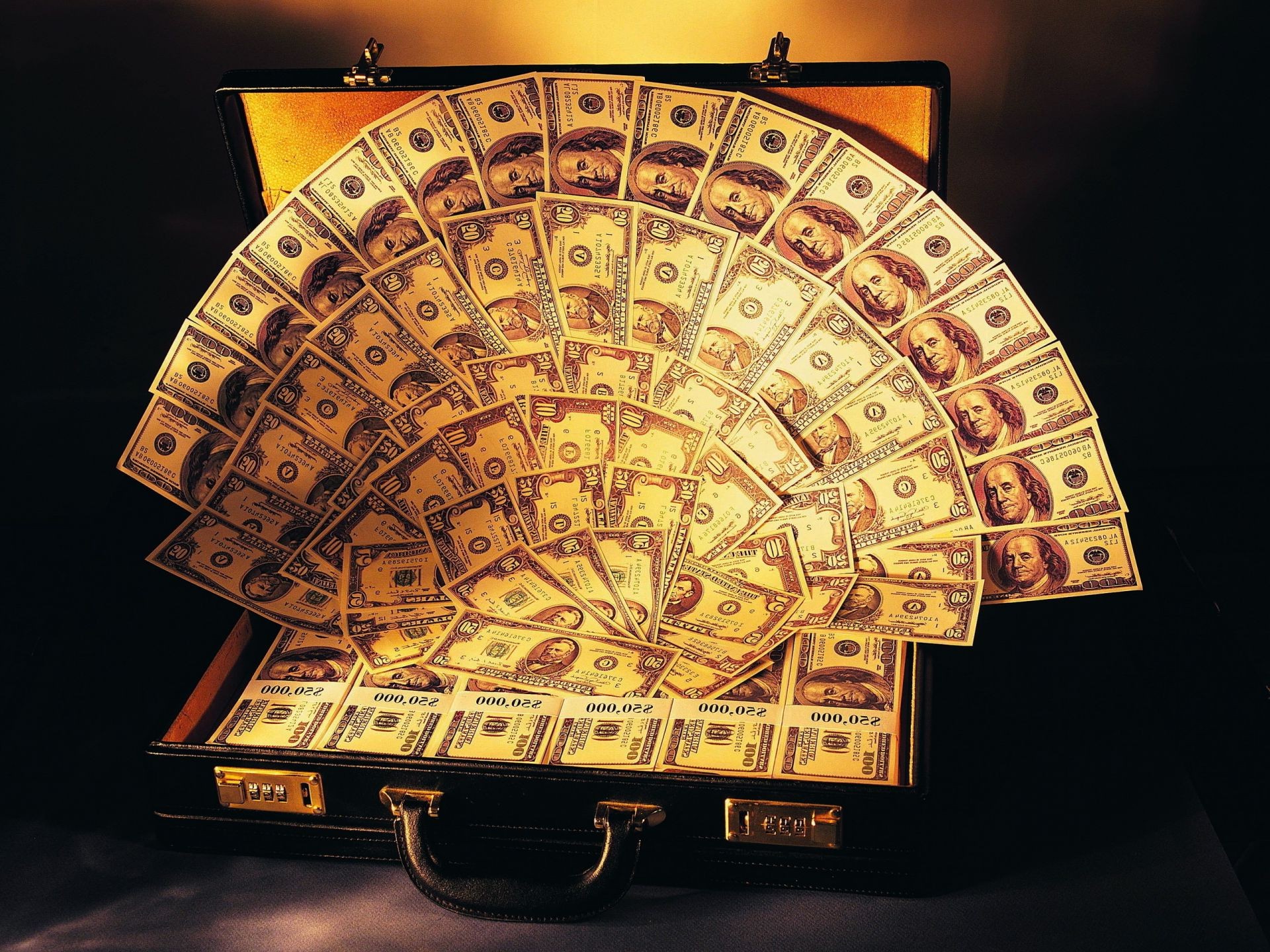 A suitcase with a lot of money
