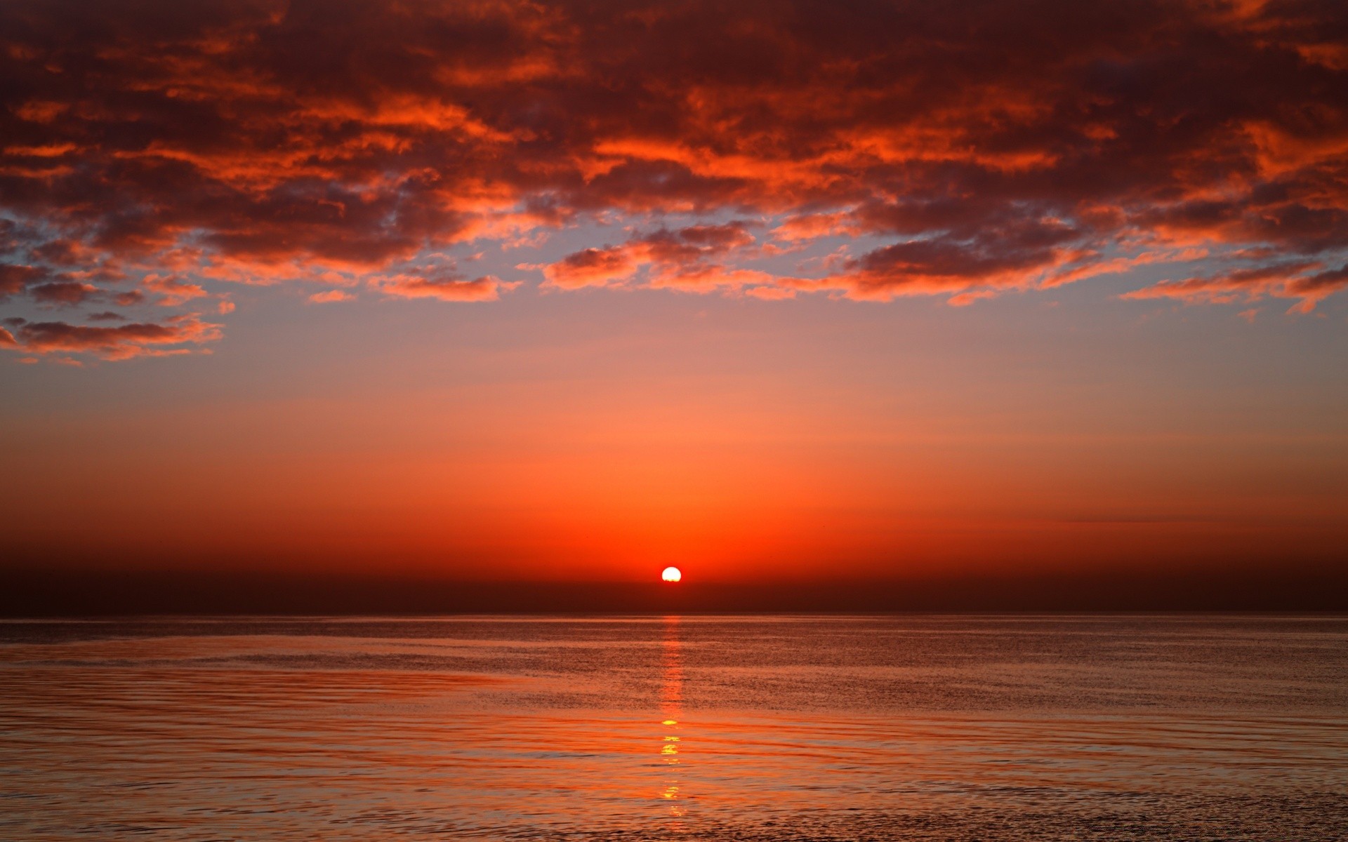 Bright sunset and calm sea