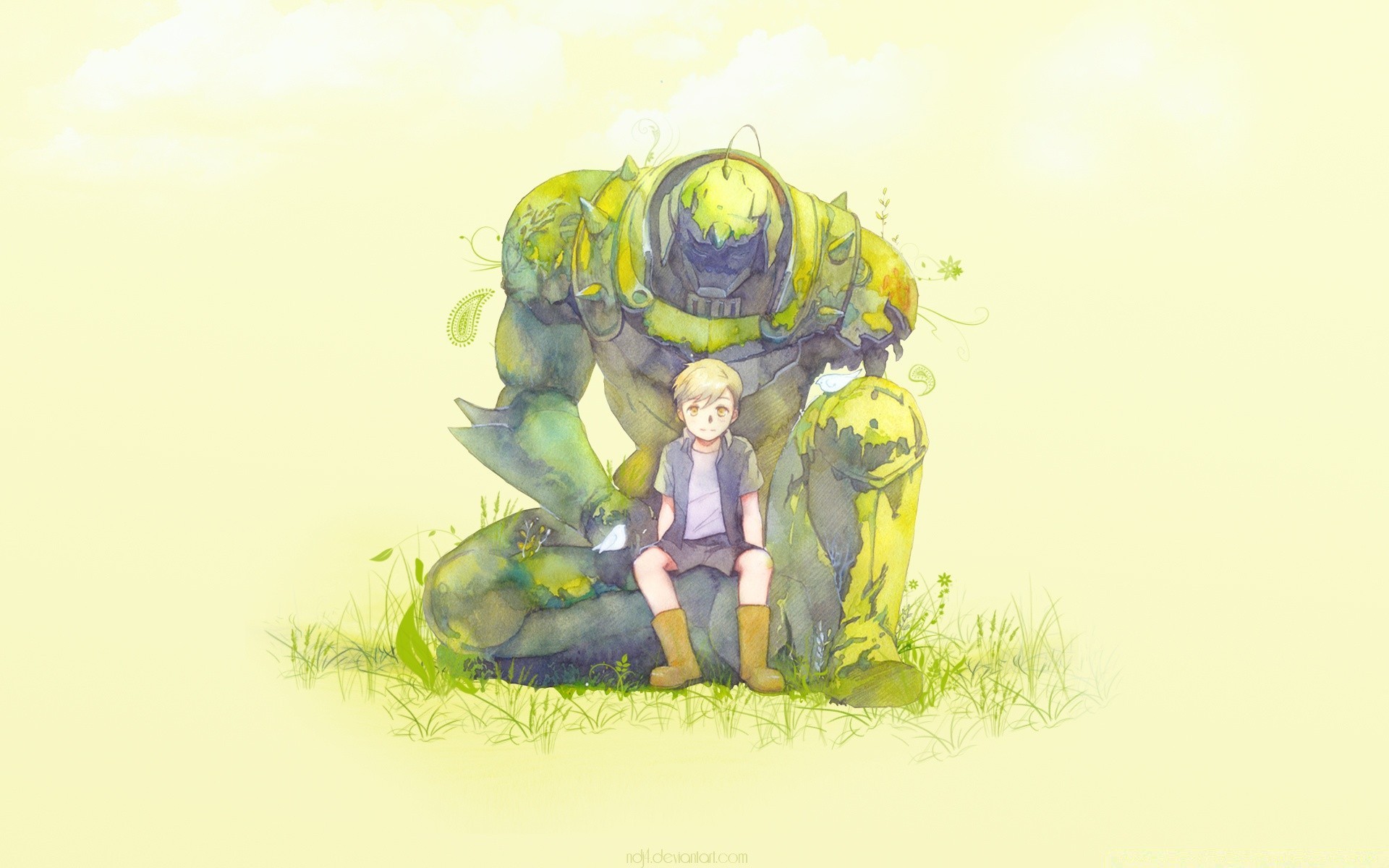 An armed man and a teenage boy, a brick house on the edge of a coniferous forest, twilight