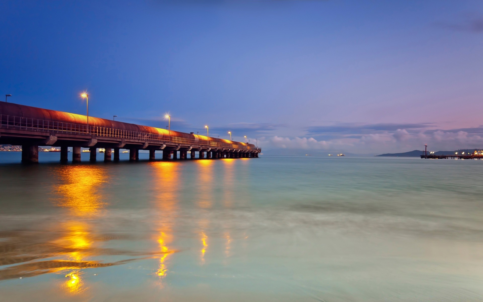 Red sunset, rocky coast, gray sea with a motor ship in the distance