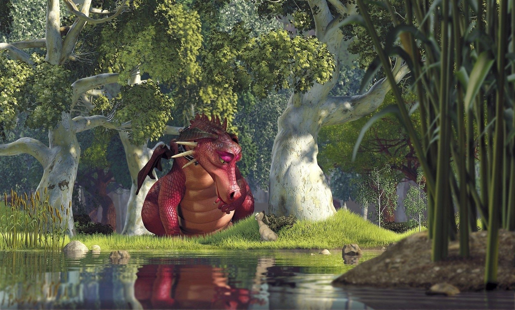 Sad pink brawl by the lake