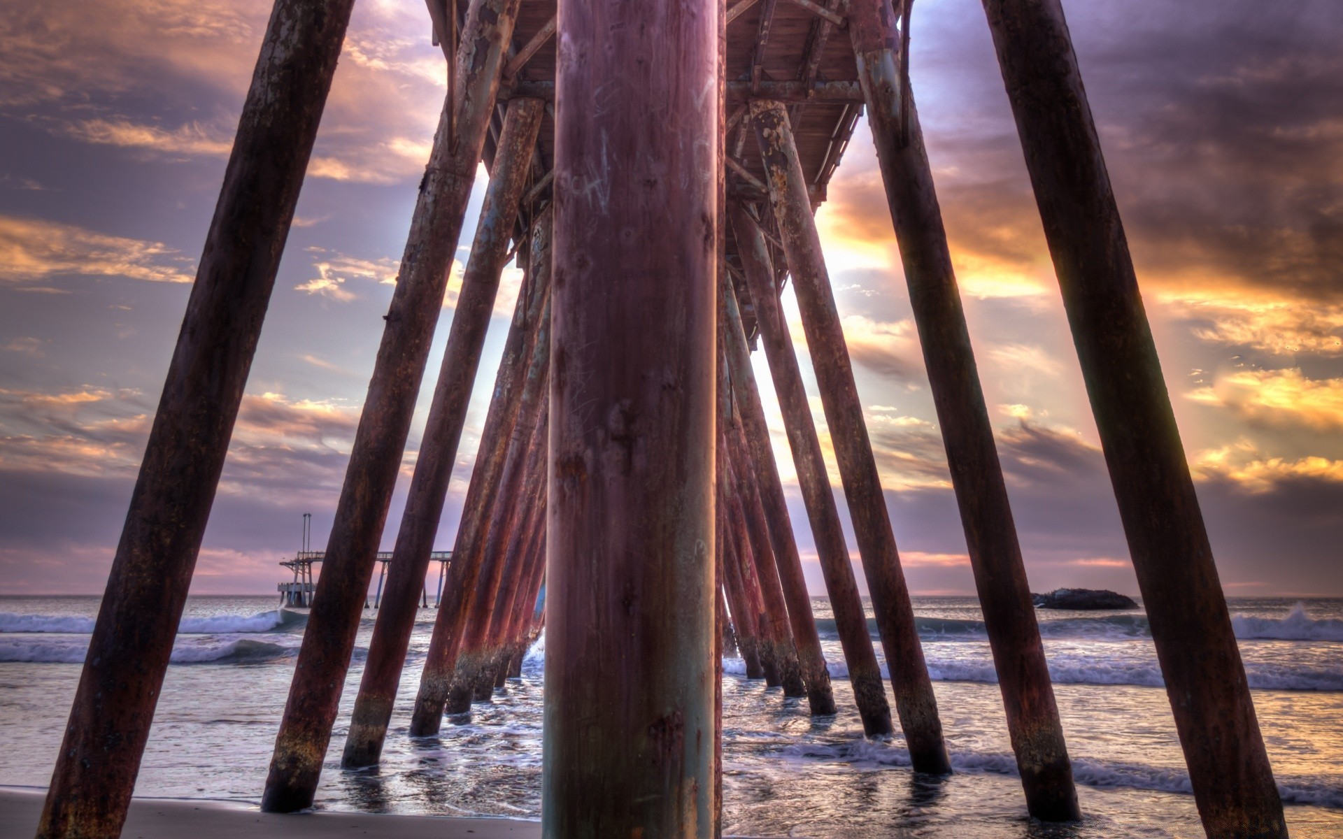 The sky over the sea is covered with purple cloudsThe sky over the sea is covered with purple clouds