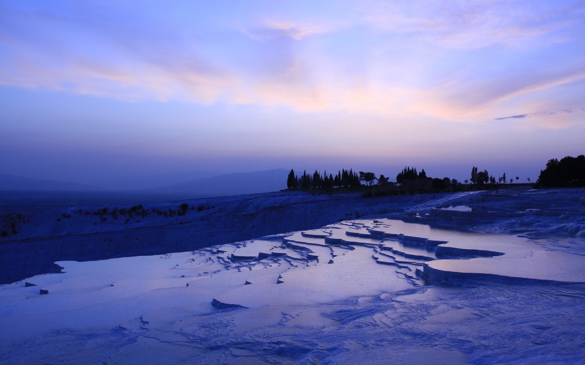 Purple sky and snow