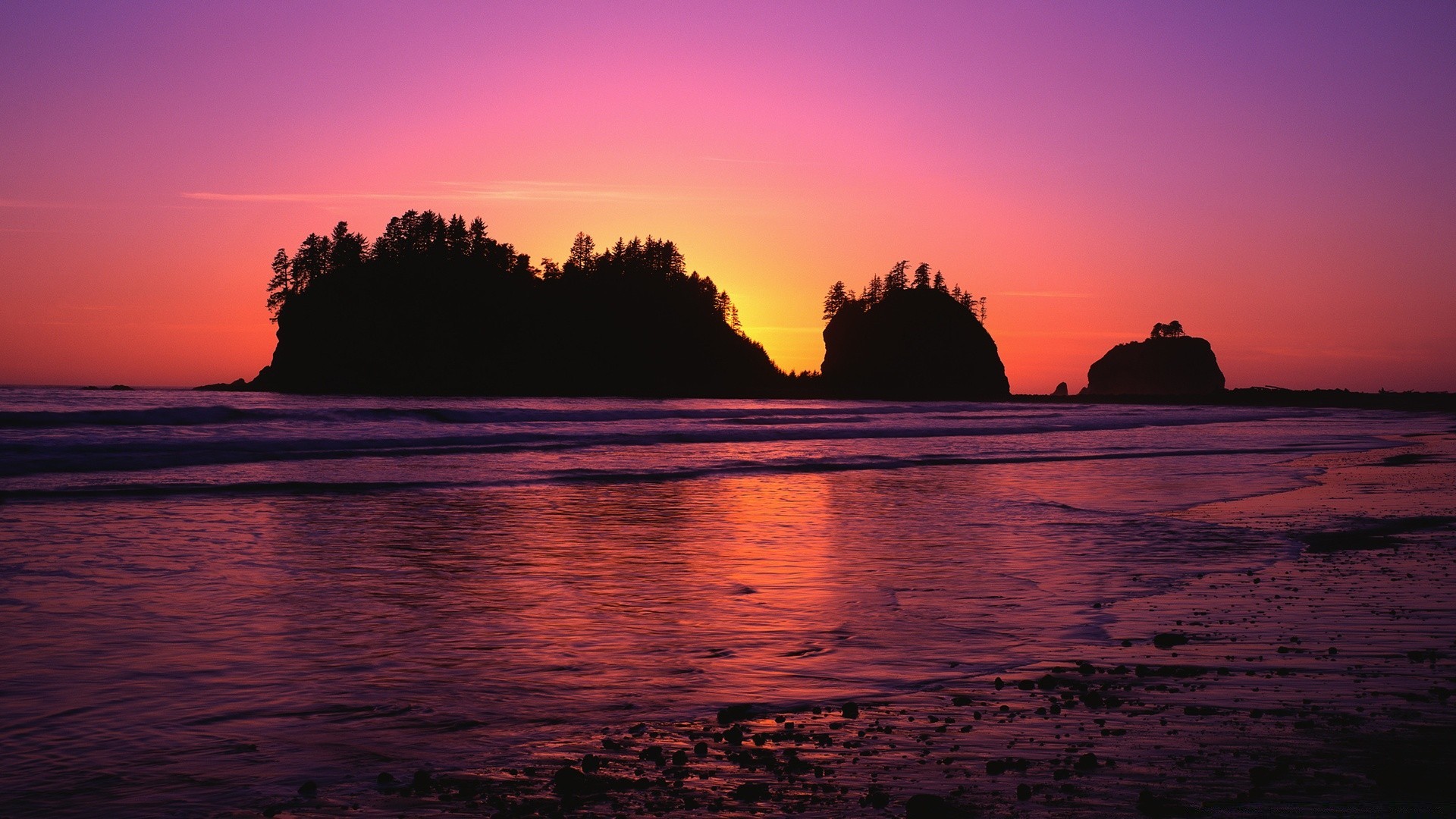 Crumbly purple clouds on the whole sky turning into red-orange color