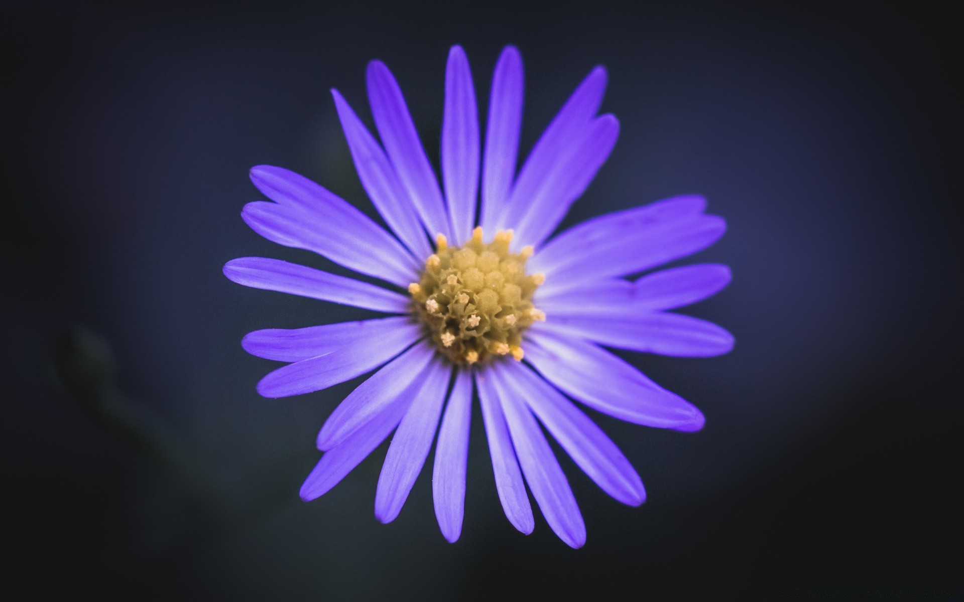 Bright purple chamomile on a dark background