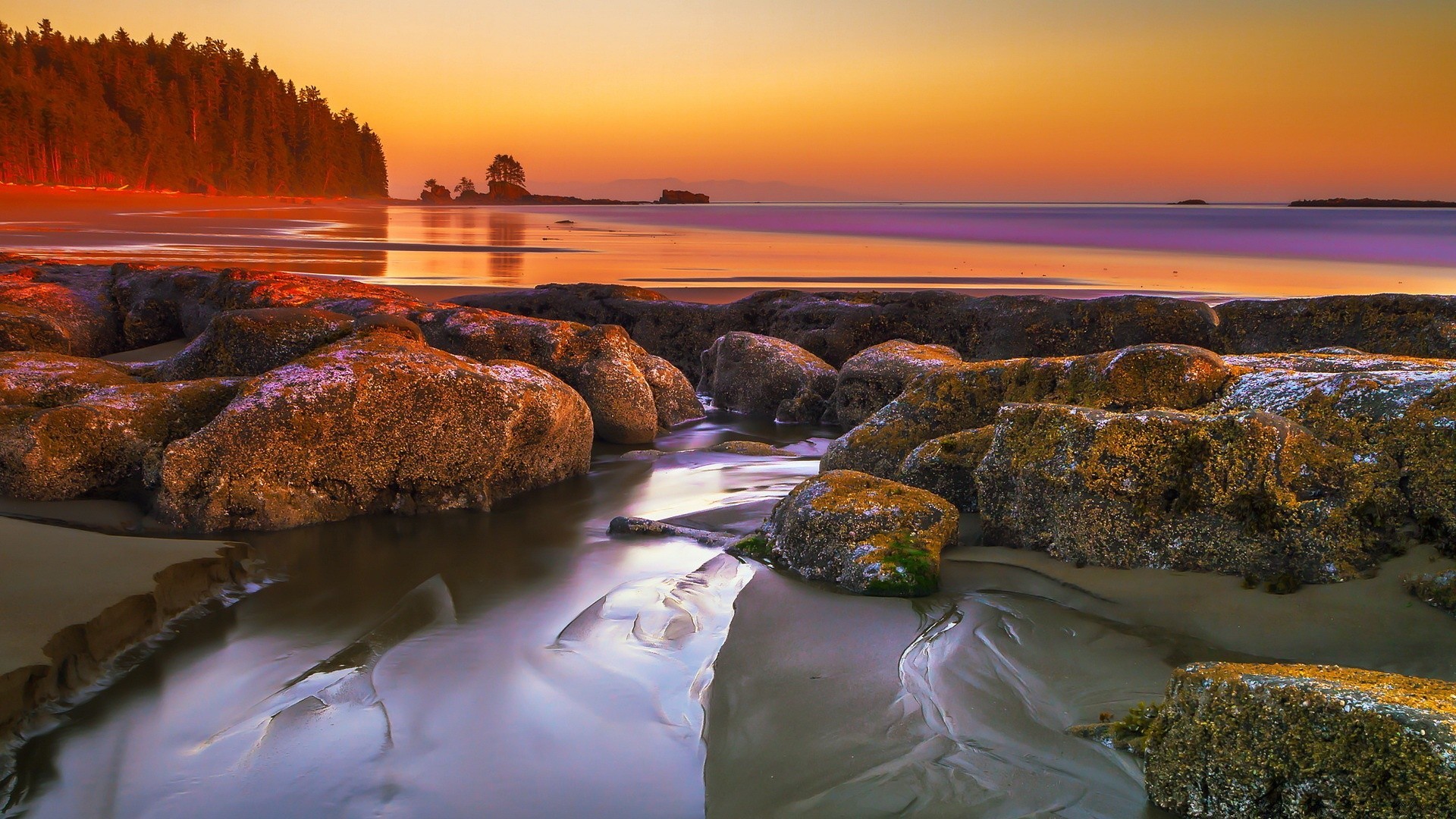 Beautiful sunset on the background of stones