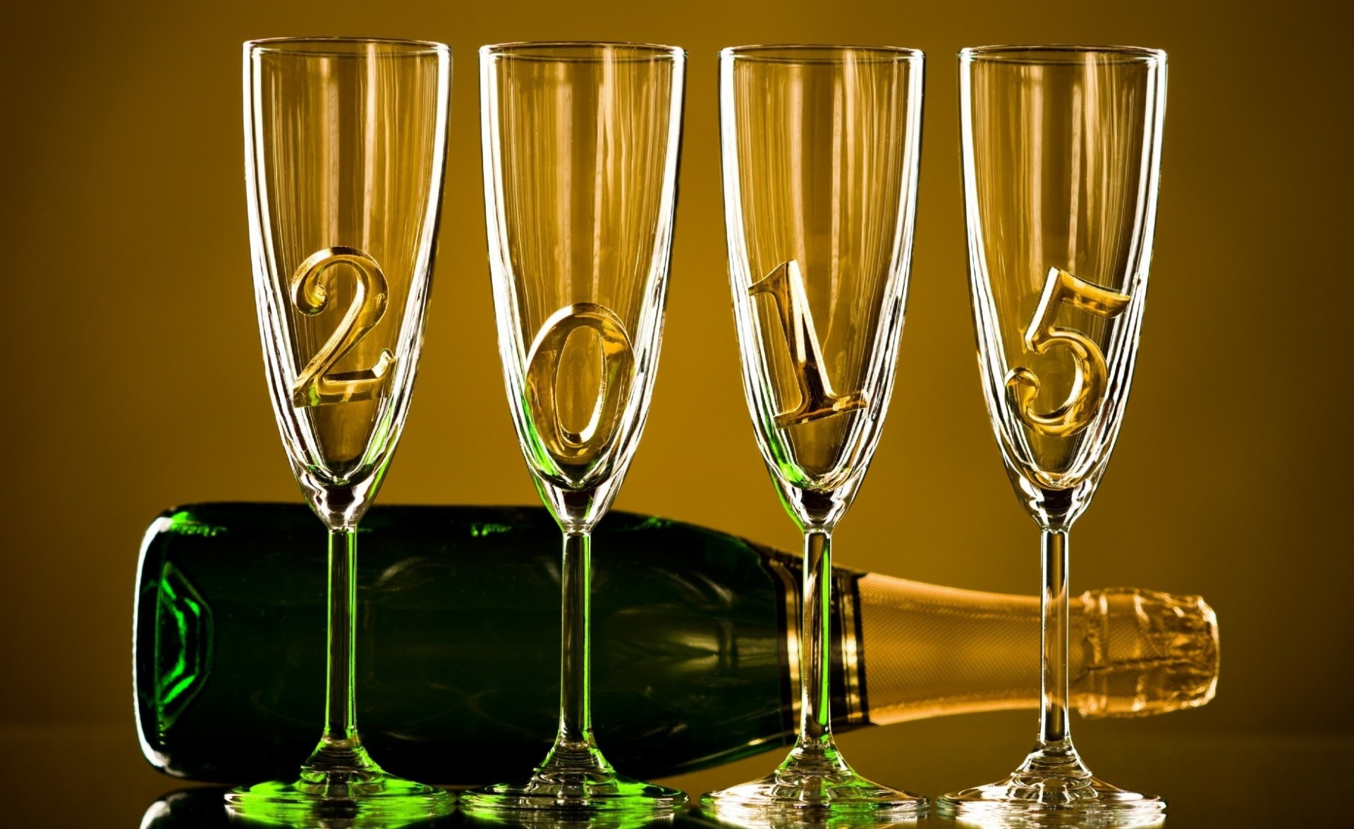 A bottle of champagne. glasses with the inscription 2015A bottle of champagne. Glasses with the inscription 2015