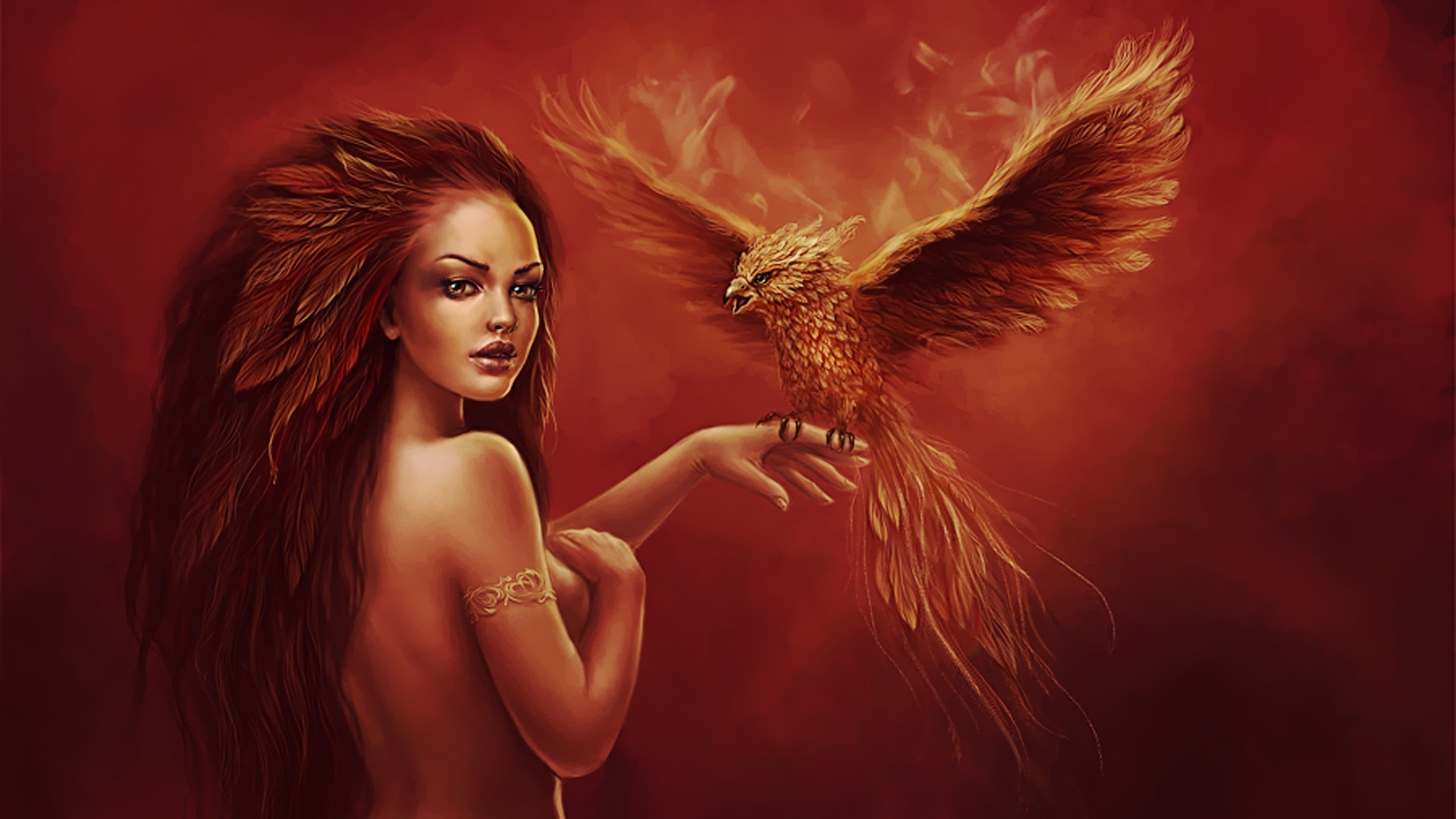 A girl with a bird on her arm. the phoenix bird. bird girl