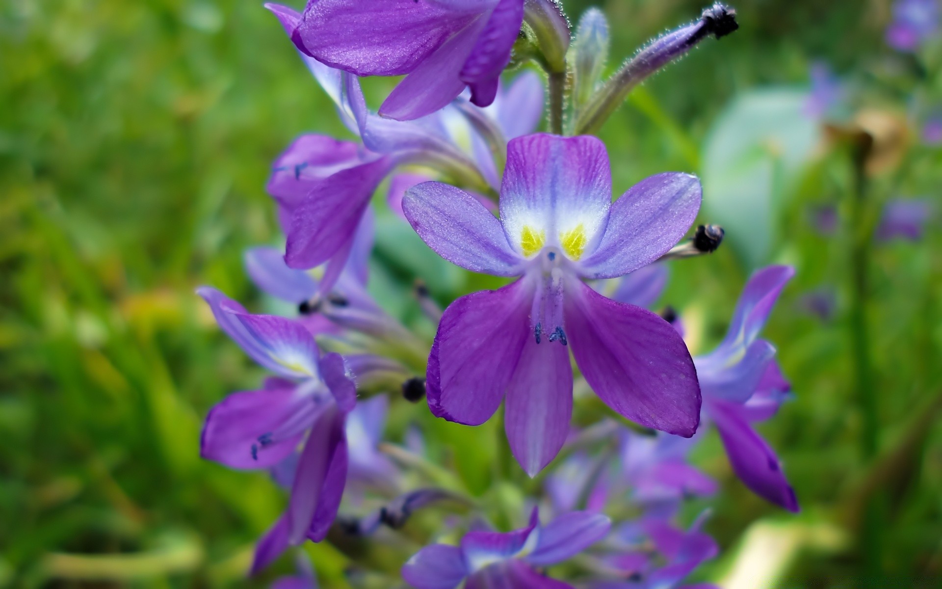 Violets in macro on a green background