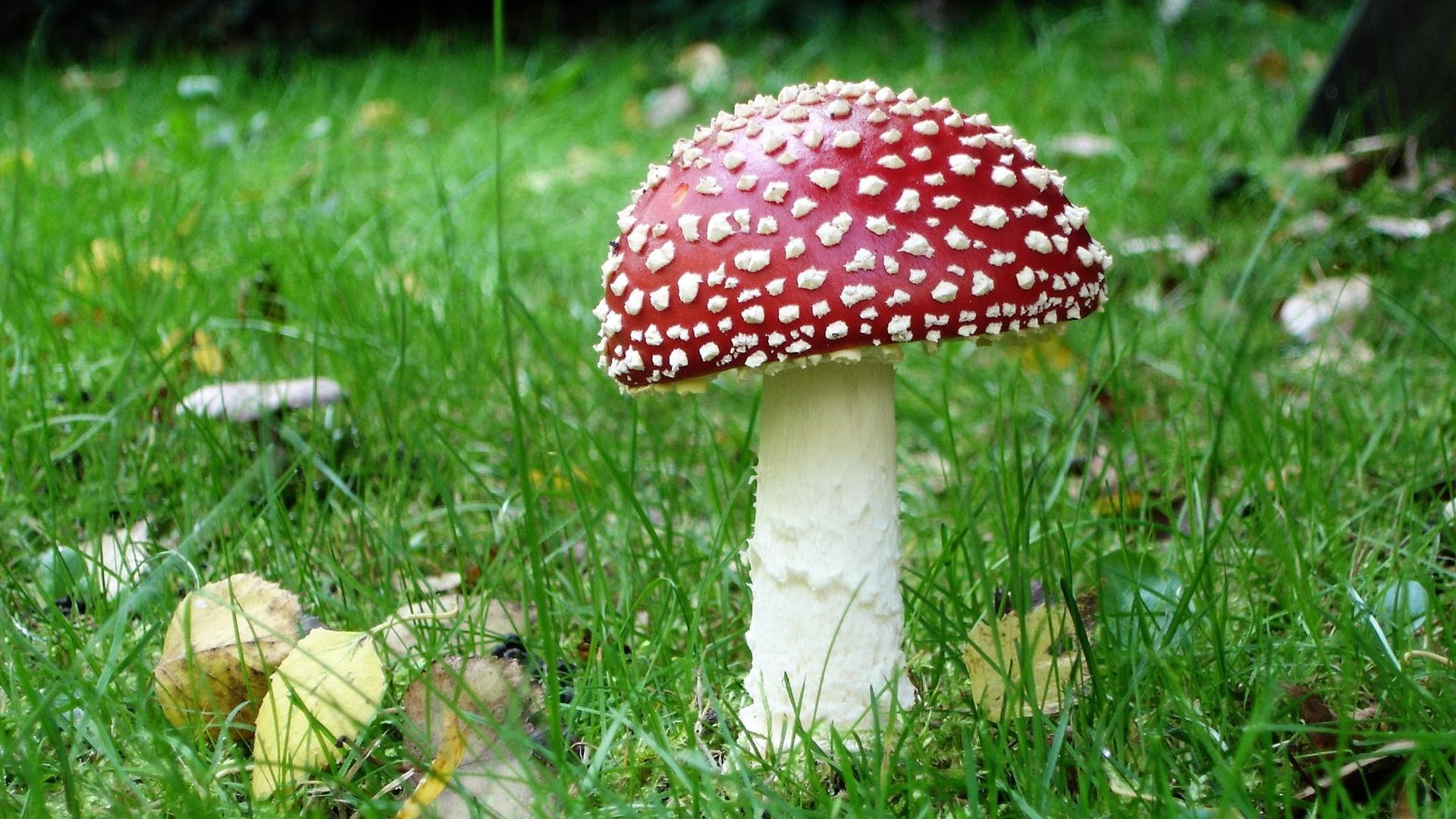 Beautiful fly agaric on the green grass
