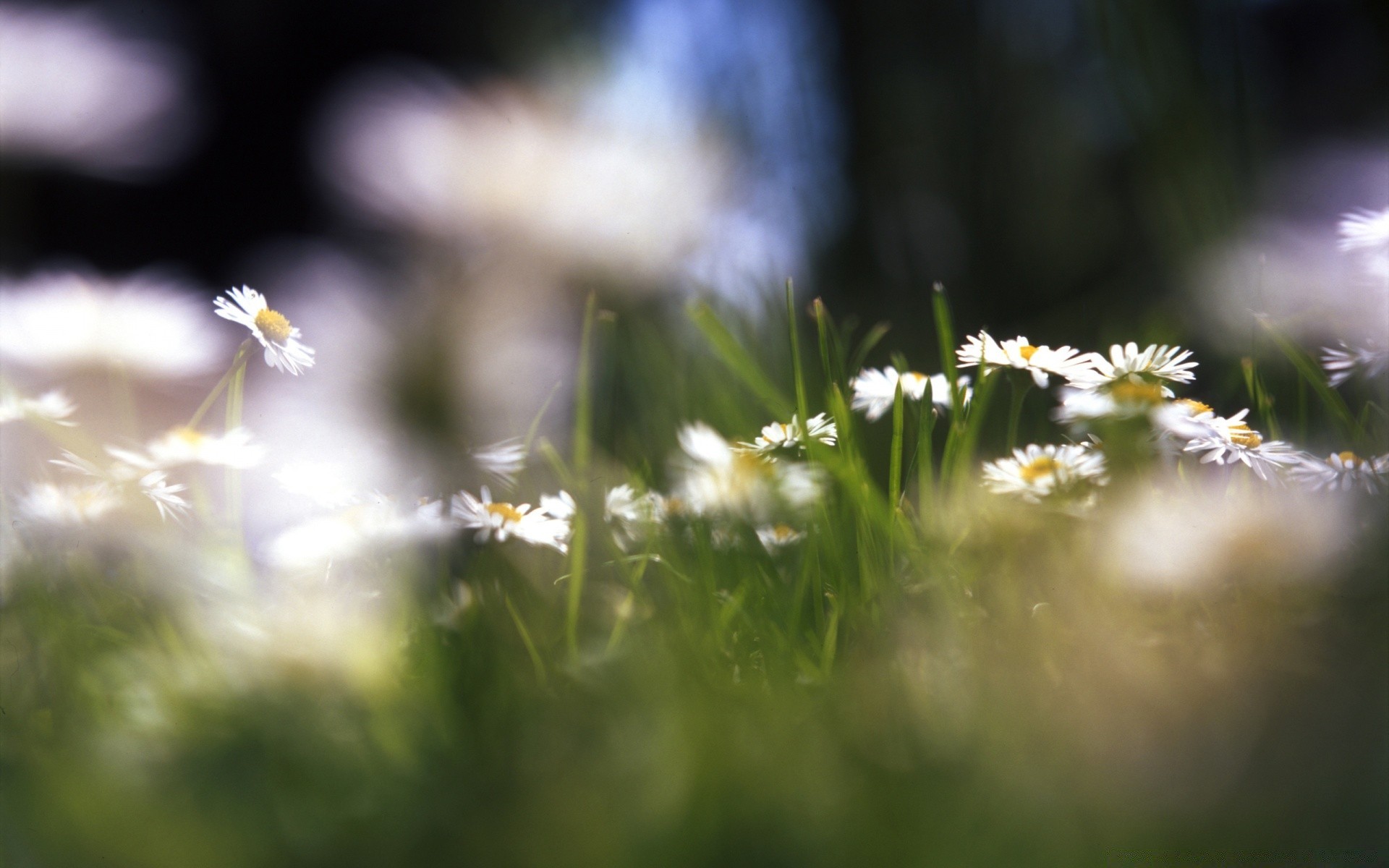 Dandelions from the fluff flying from him among the green grass on the background of the sky with white clouds