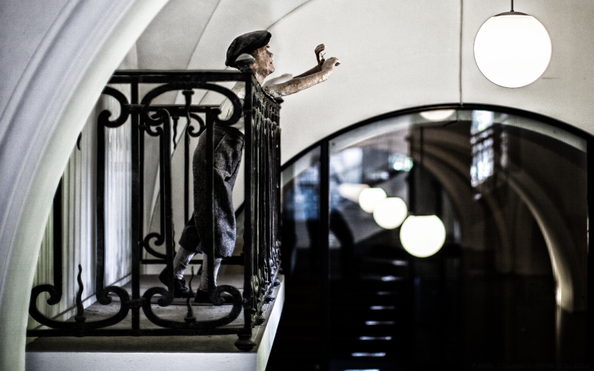 The baby elephant reaches out to the seal in the aquarium. The baby elephant learns the world.