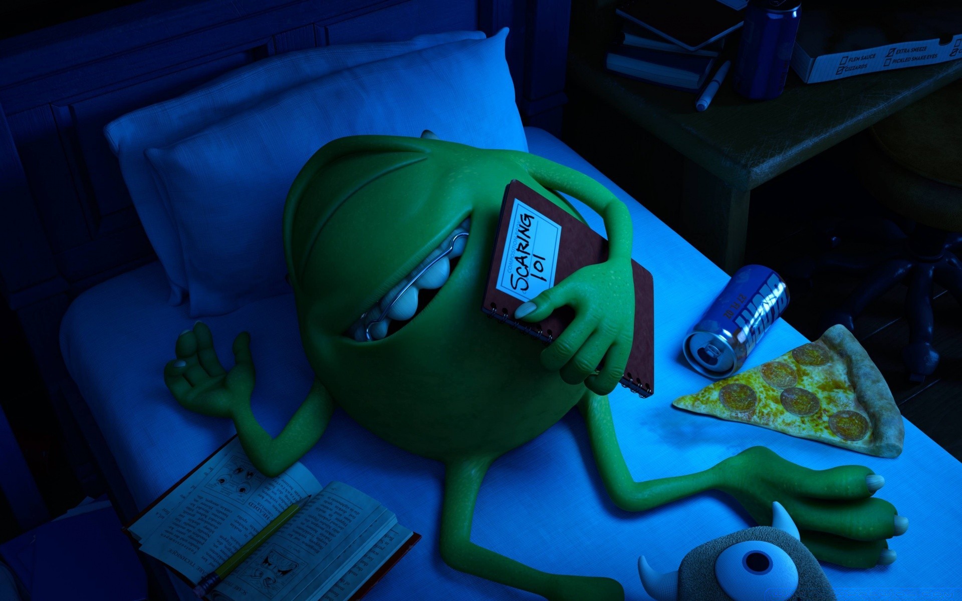 Mike Wazowski. Rest. Holidays. Pizza and Cola