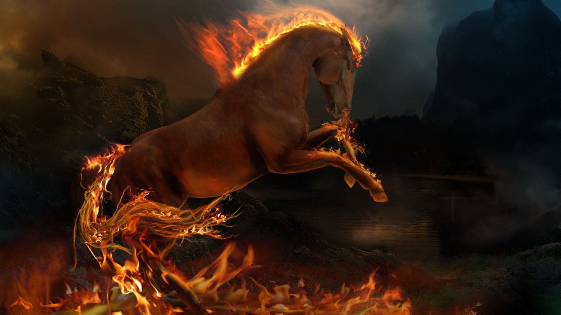 Symbol of the year. The year of the fiery horse. A bay horse with a burning mane