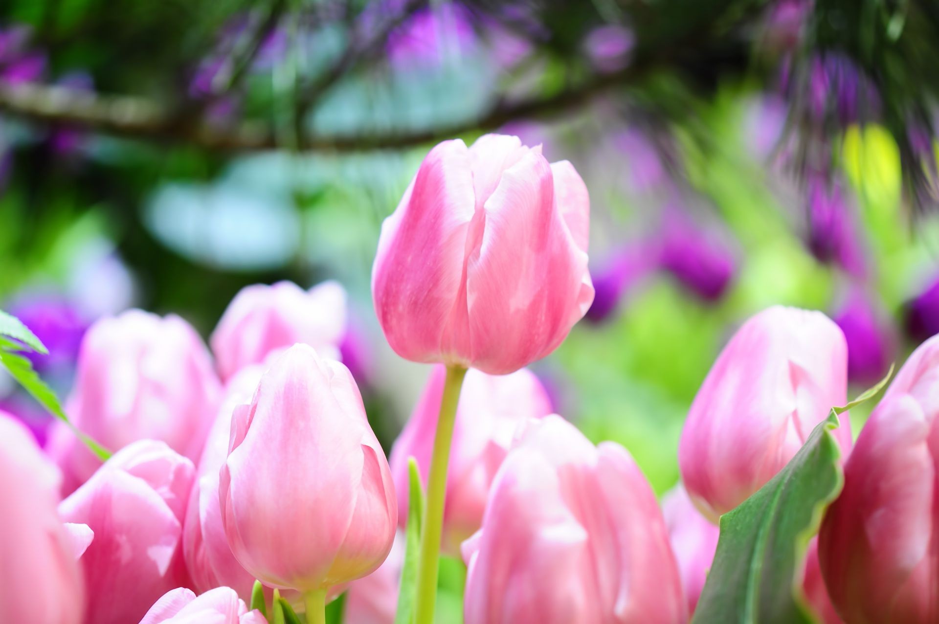 Photos of pink tulips in the garden