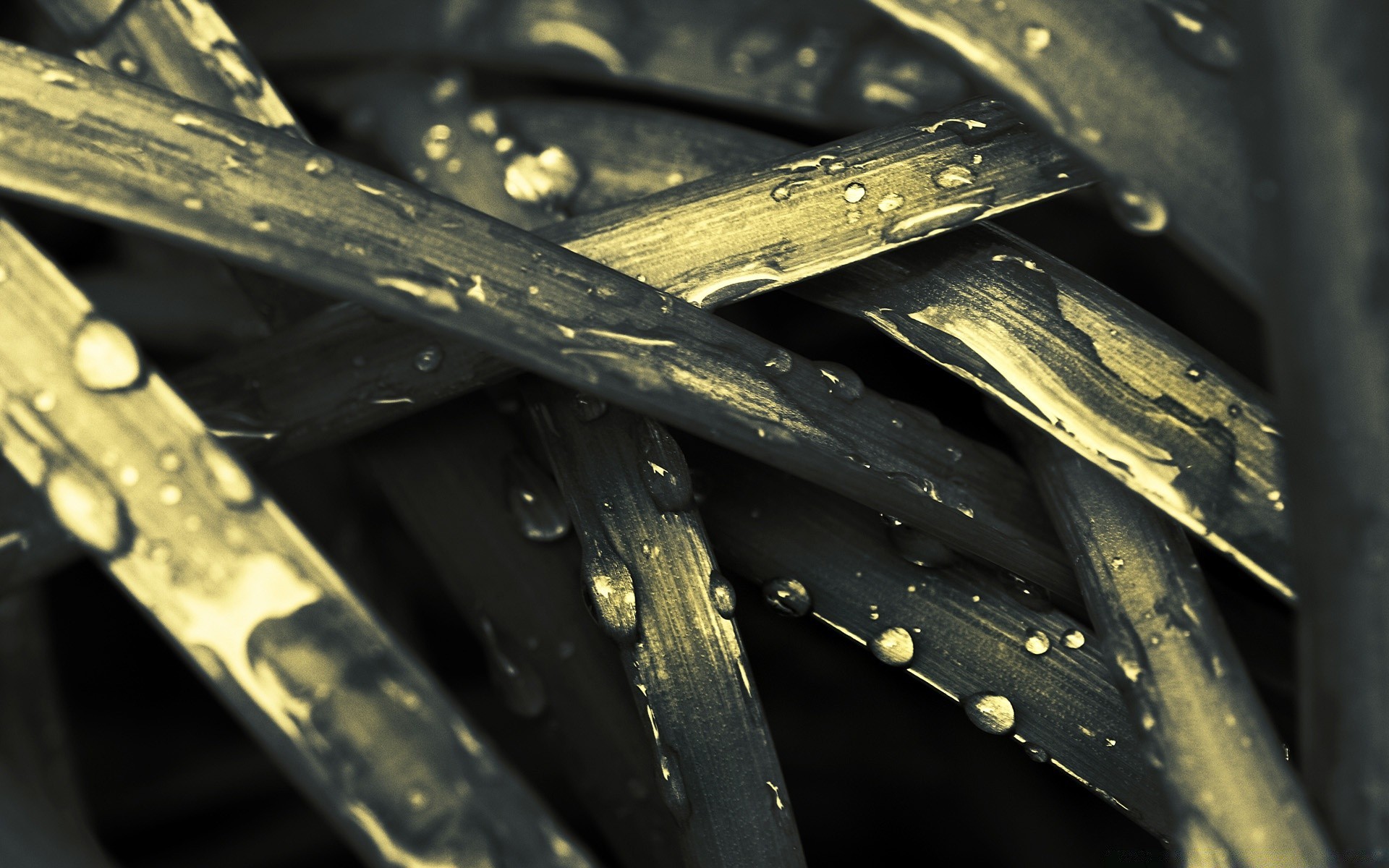 Wet grass. Dark photo. Monrhrom