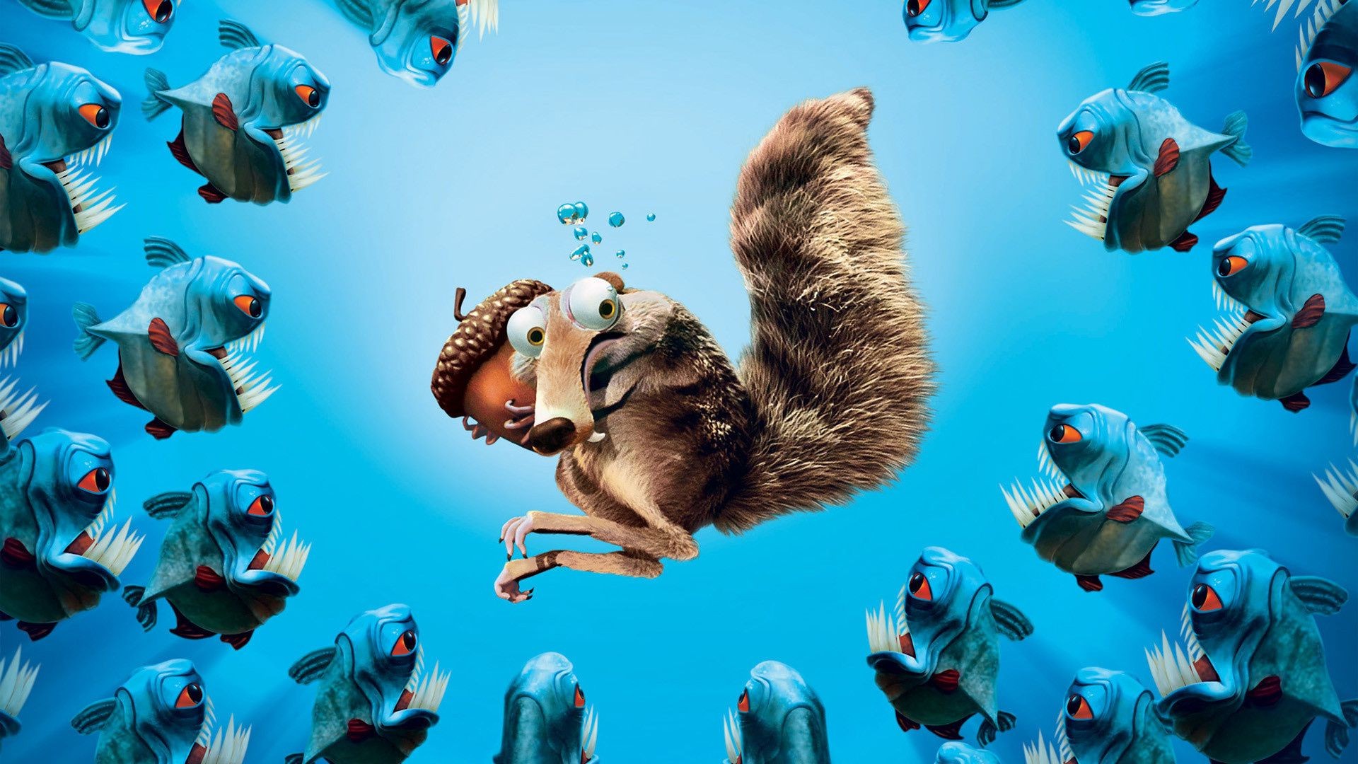 A squirrel from the ice age cartoon saves a nut from piranhasA squirrel from the Ice Age cartoon saves a nut from piranhas