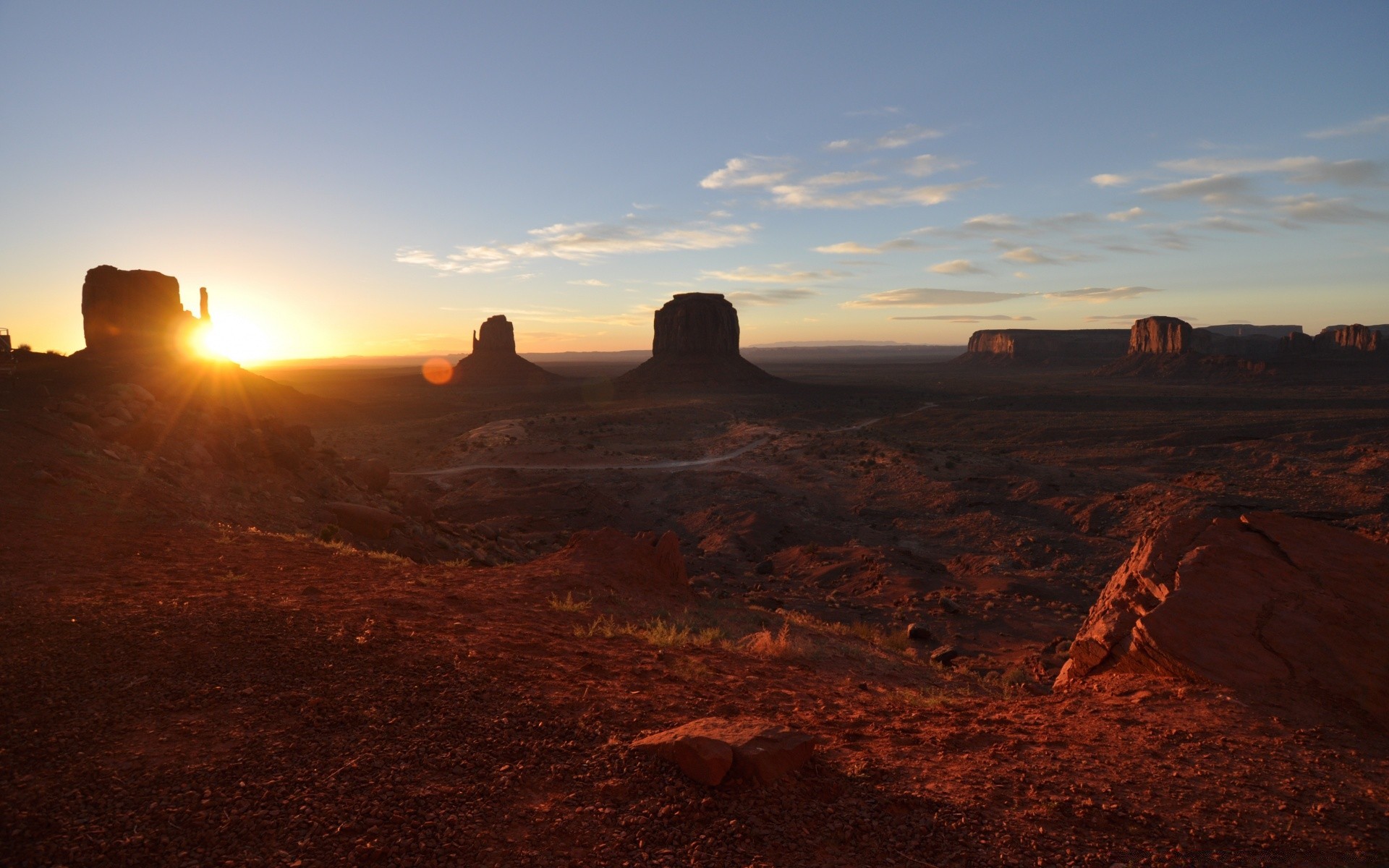 Landscape in america in the desert sunset and dawn intersect at the same timeLandscape in America in the desert sunset and dawn intersect at the same time