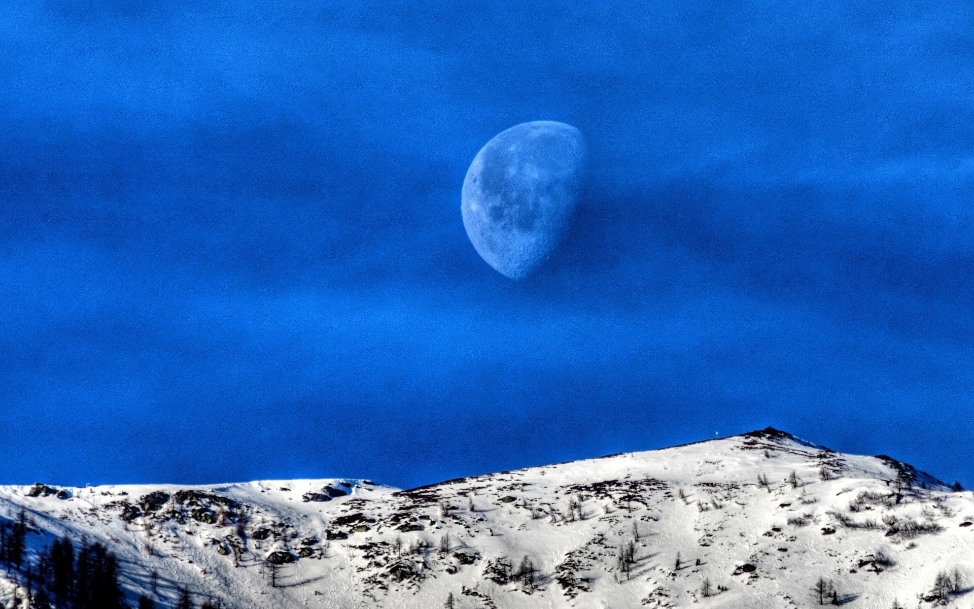Moon on the background of snowy mountains