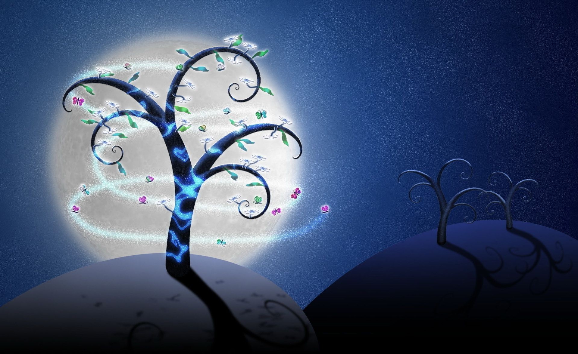 A gloomy picture of the castle against the background of the dark sky and the moon