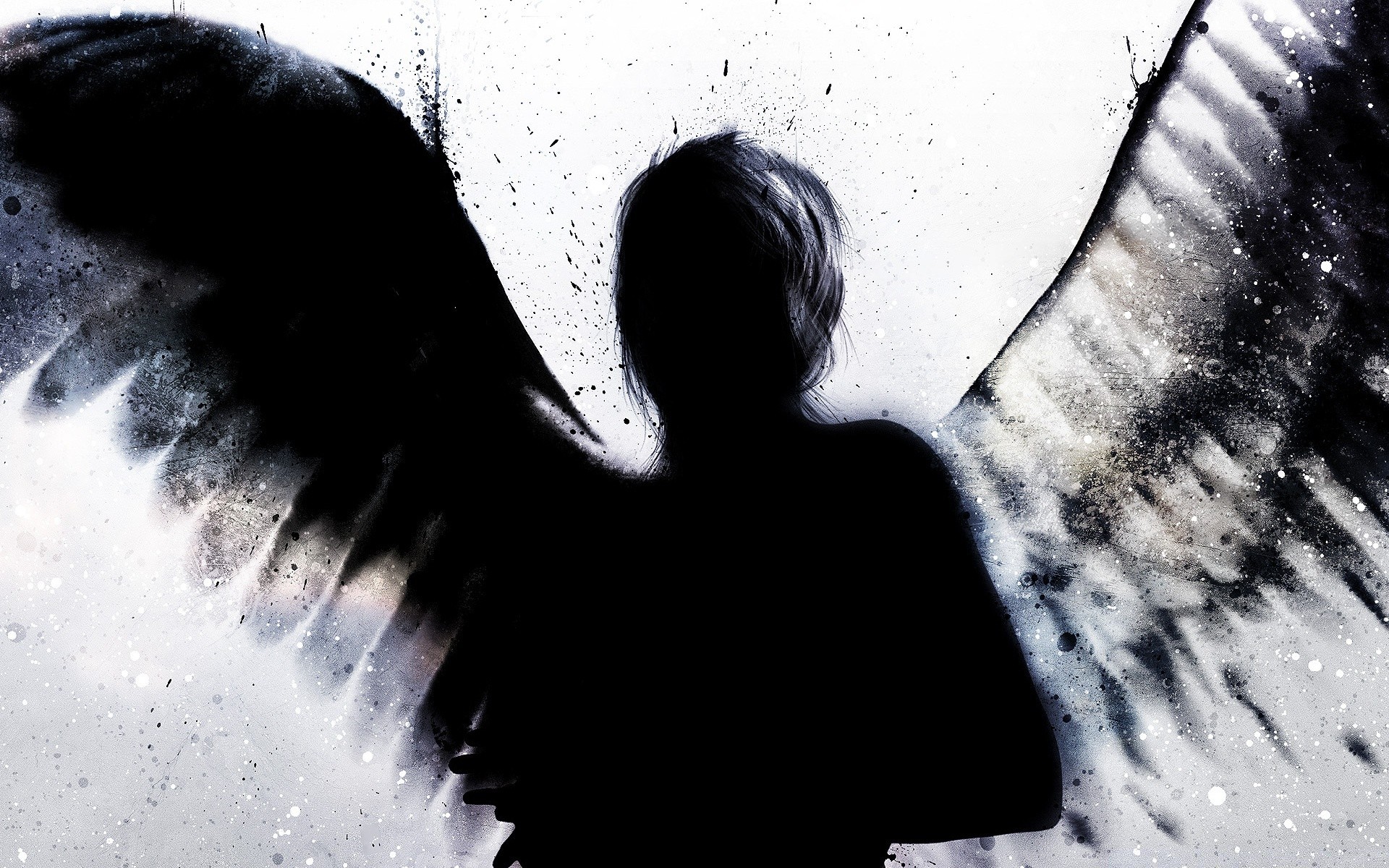 Silhouette of an angel woman on a white background