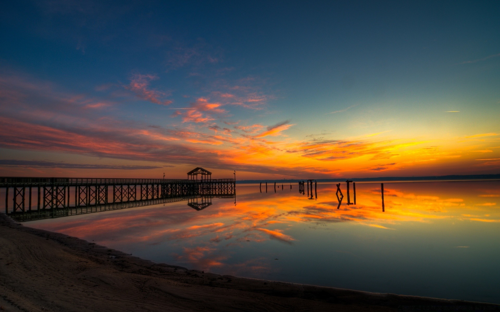 Beautiful sunrise on the beach by the water
