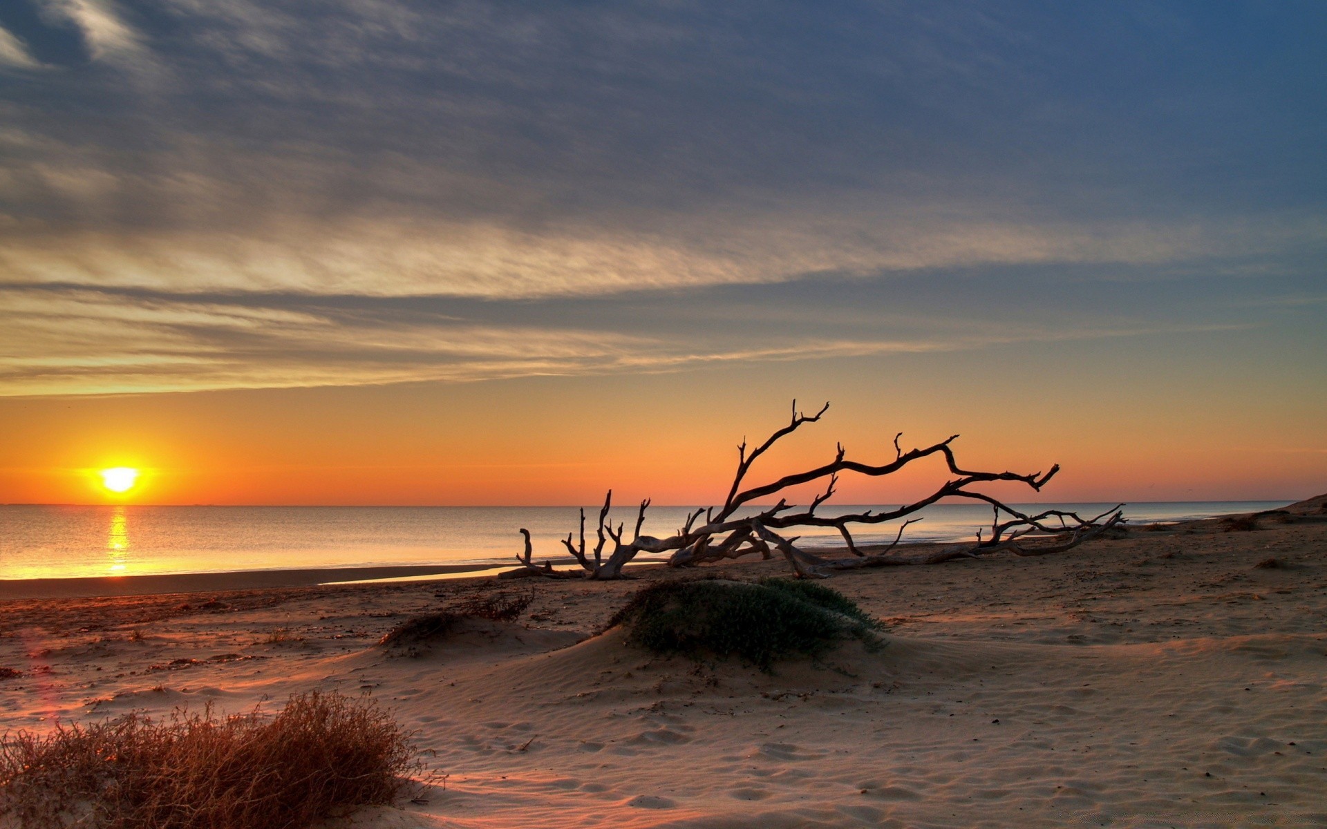 Sunset or sunrise in winter on the beach and the reflection of the sun in the water