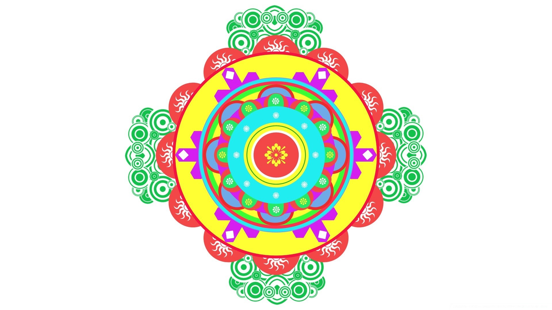 Graphic design of ooi with geometric pattern bright pink-yellow