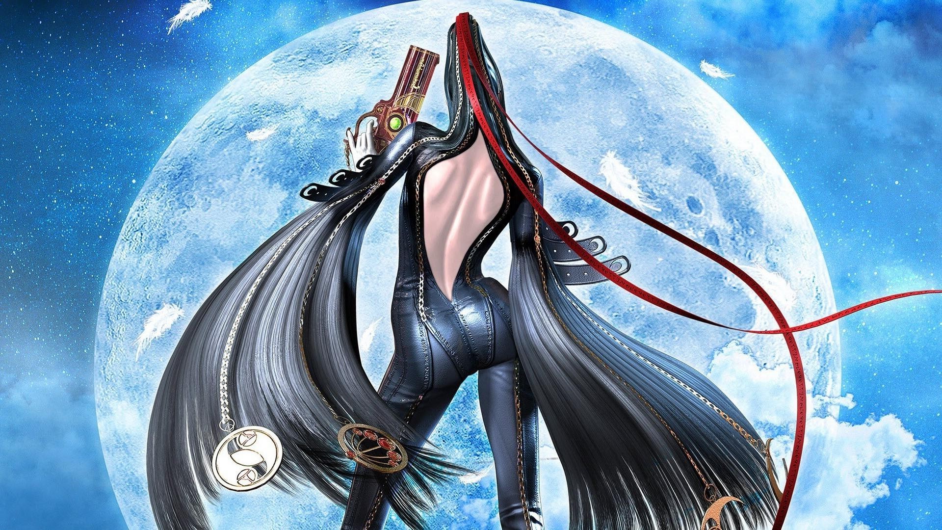 Anime: girls on the background of the moon