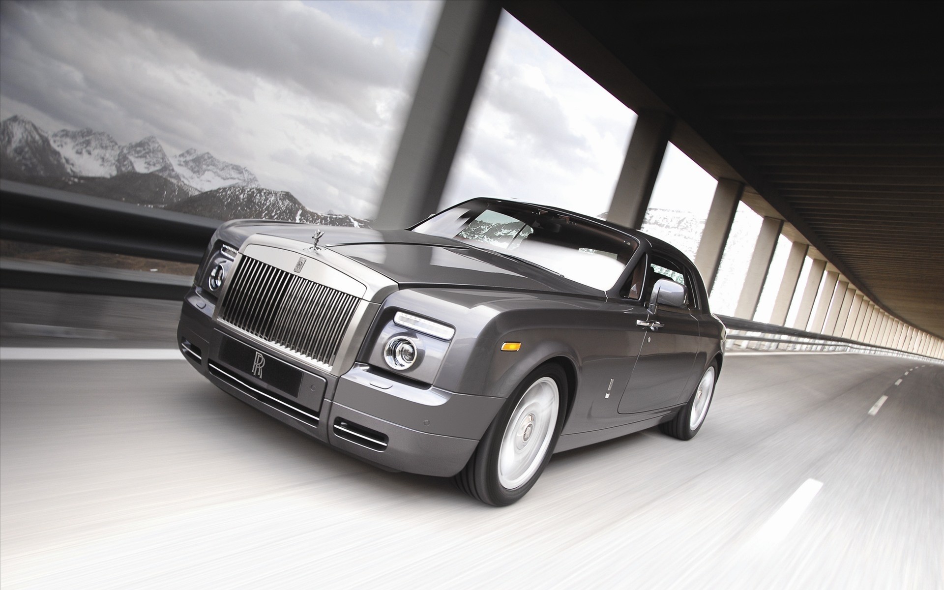 The Bentley car on the road drives on the opposite transport