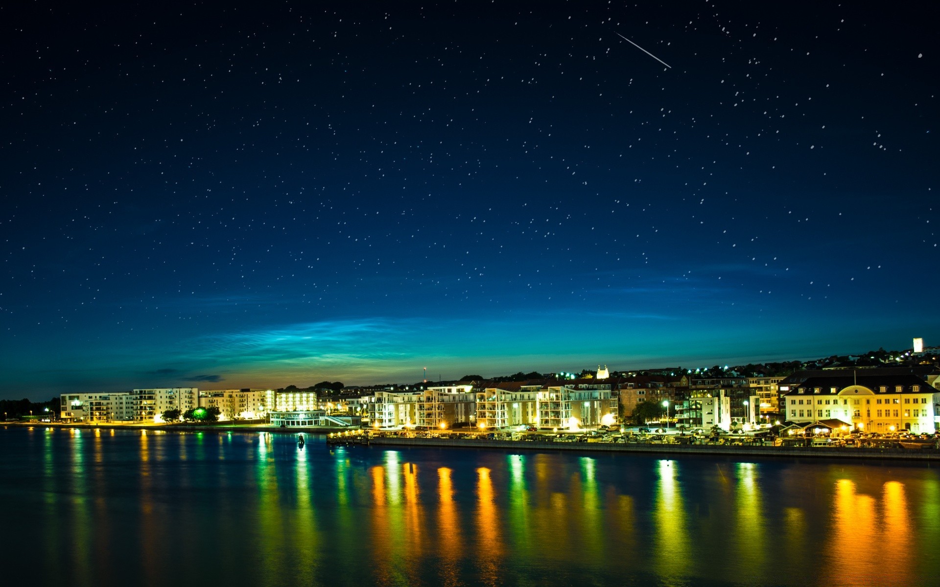 Starry sky and beautiful landscape next to the ocean