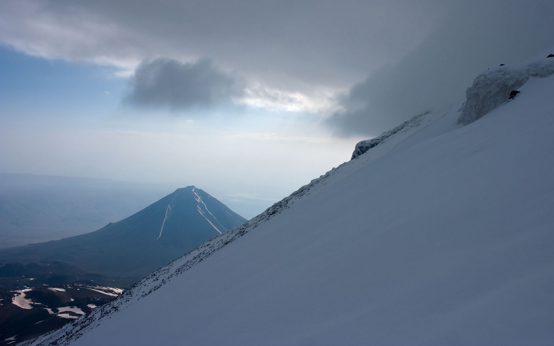 Mountain peak in the winter season. snow-covered mountain peak in the azure skyMountain peak in the winter season. Snow-covered mountain peak in the azure sky