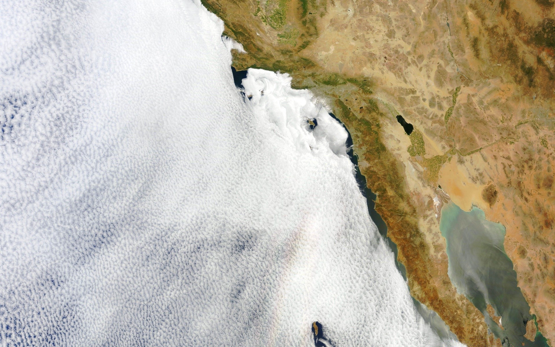 View from the top of the fir trees in the snow and fog under themView from the top of the fir trees in the snow and fog under them