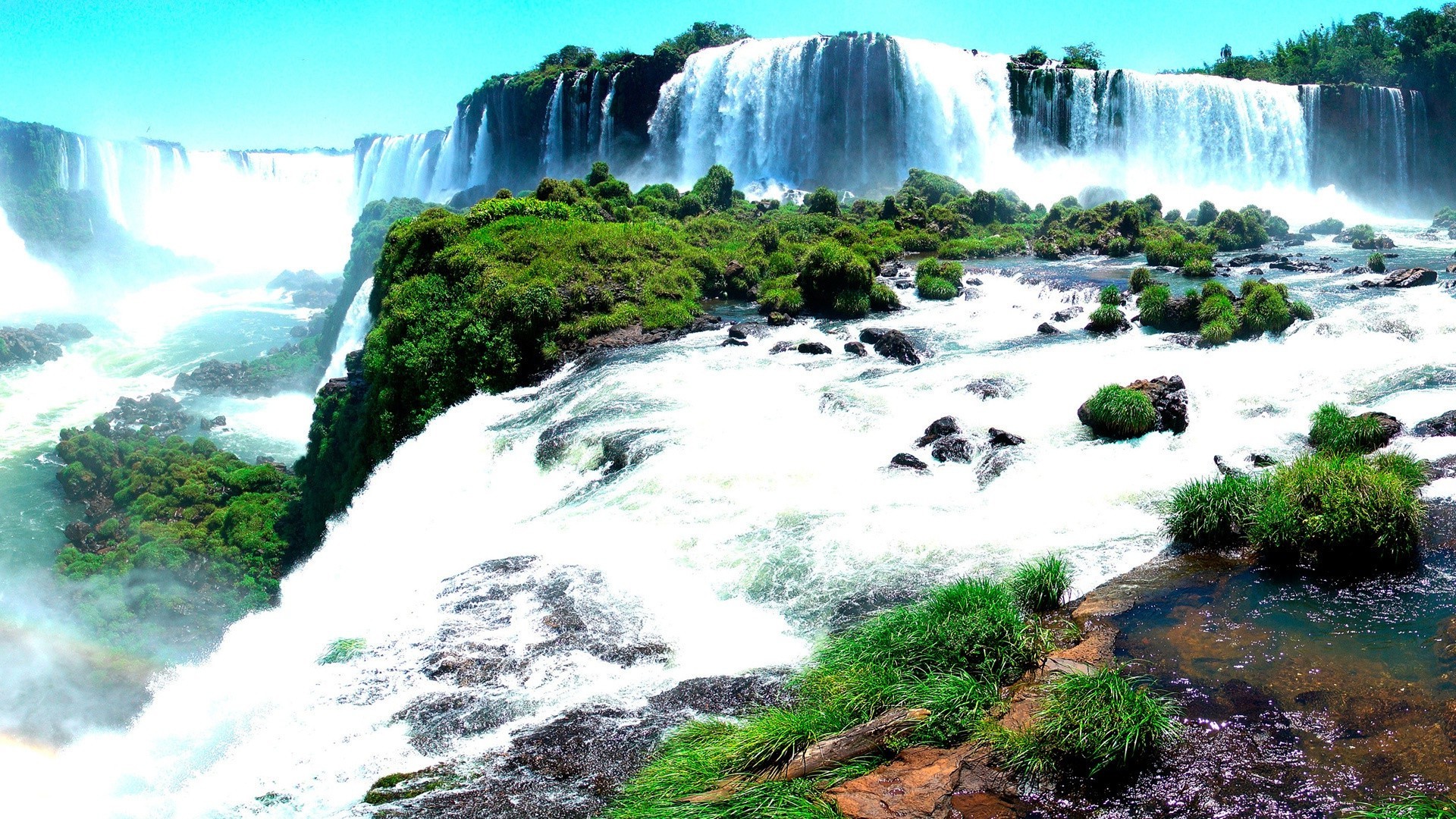 Majestic are the waterfalls flowing into the transparent riverMajestic are the waterfalls flowing into the transparent river