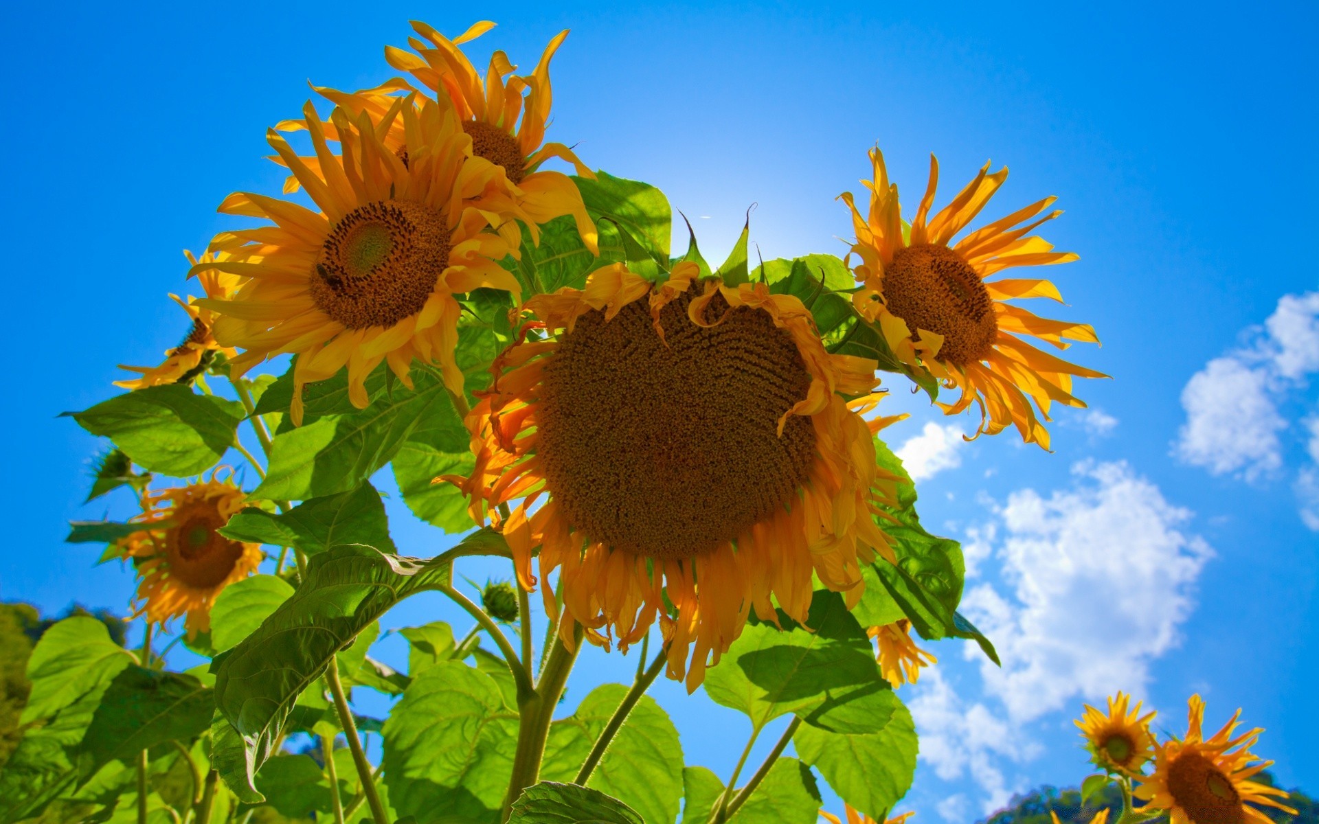 Yellow sunflowers in the light of the sun