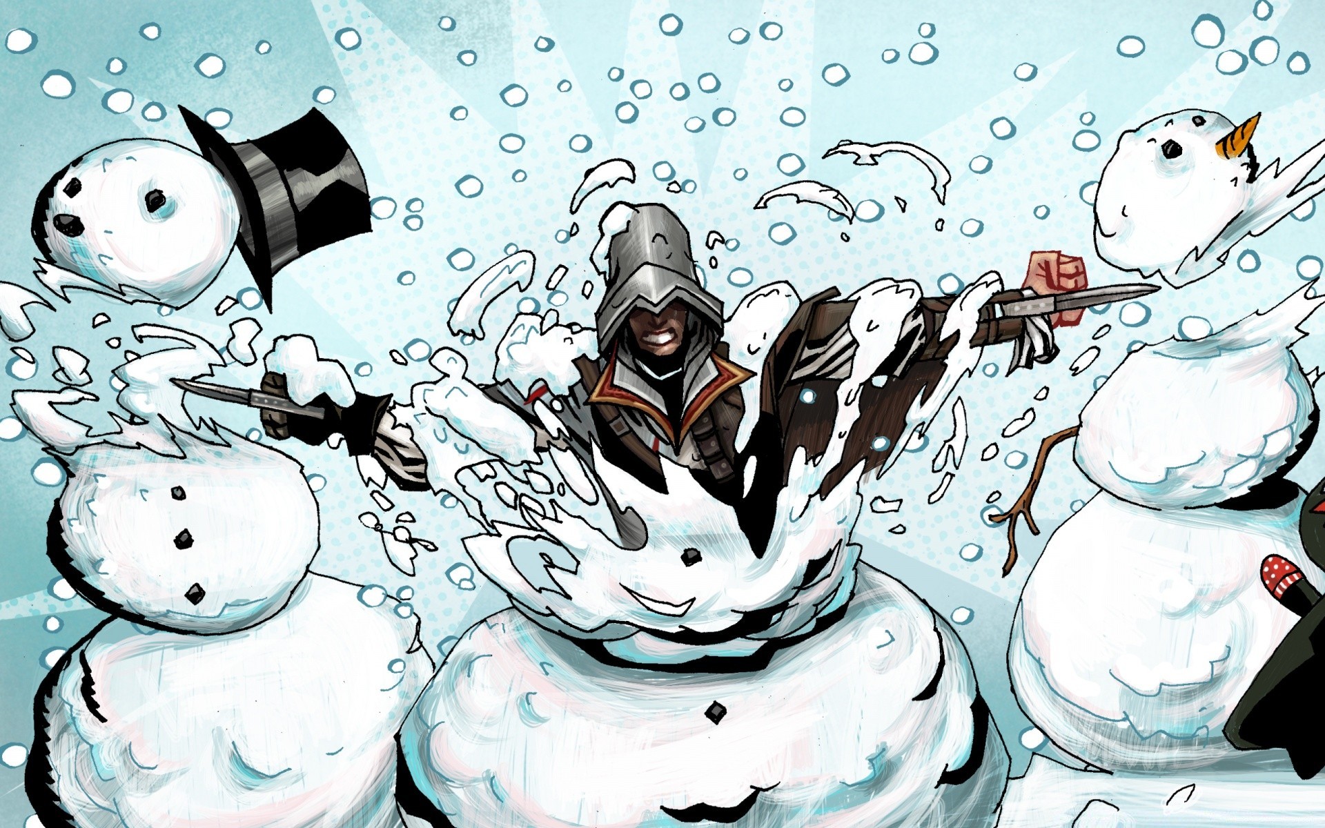 Cartoon hero comes out of a snowman