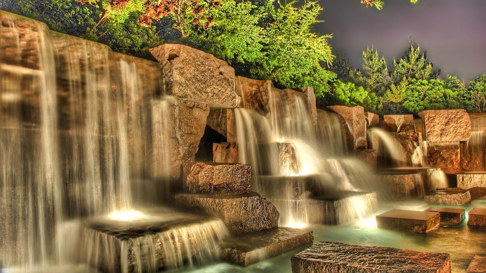 Artificial waterfall with backlight